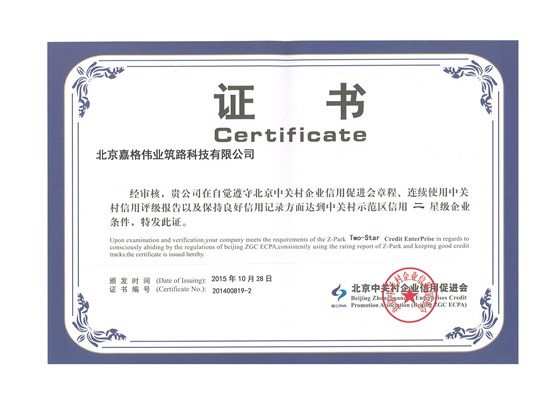 首頁(yè)企業(yè)榮譽(yù) 中關(guān)村示范區(qū)二星級(jí)企業(yè)