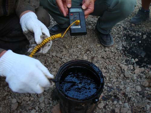 SBS改性瀝青是以基質(zhì)瀝青為原料,加入一定比例的SBS改性劑,通過剪切、攪拌等方法使SBS均勻地分散于瀝青中,同時(shí),加入一定比例的專屬穩(wěn)定劑,形成SBS共混材料,利用SBS良好的物理性能對(duì)瀝青做改性處理。
